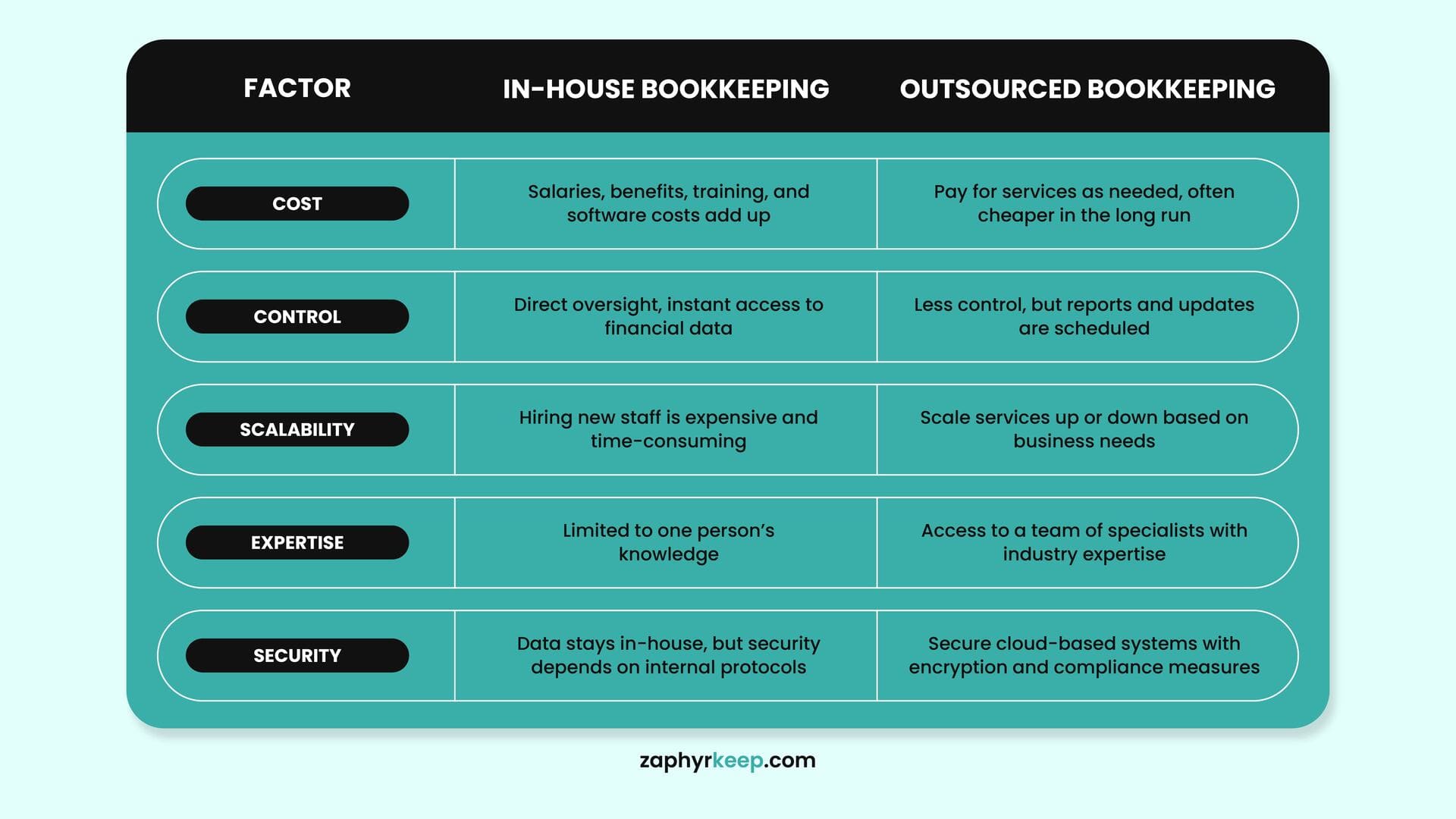 However, outsourcing also means less direct control over financial operations and requires trusting a third party with sensitive business data.